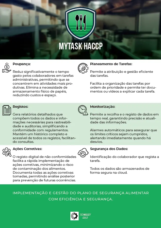O Software Mytask HACCP é tudo o que precisa para gerir o seu HACCP, pois permite gerir digitalmente as tarefas do plano, tornando o processo mais ágil e eficiente com o apoio de AI. Contudo, a eficácia depende do rigor na execução dos registos. Por causa de possíveis falhas, o sistema gera alarmística para notificar a equipa sempre que os registos não são feitos ou quando ocorrem desvios nos Pontos Críticos de Controlo.